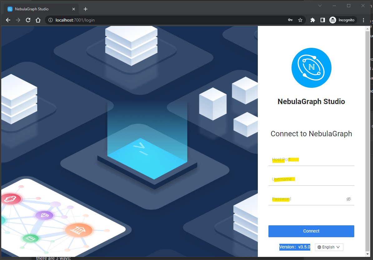 我想通过星云图形工作室版本:v3.5.0连接到我的实例