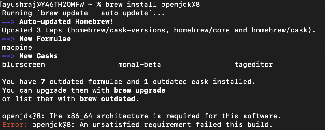 我正在编写一个需要openjadk@8的代码库。我有一个M1 Mac芯片,而openjdk8是英特尔芯片,而不是m1芯片。
