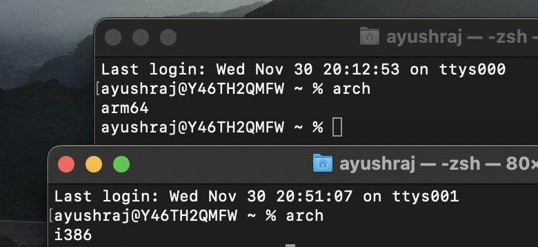 因此,我已经配置了Rosetta终端,这是一个苹果内置的模拟器转换层,用于运行苹果硅Mac上基于英特尔的应用程序。罗塞塔2号航站楼:https://www.courier.com/blog/tips-and-tricks-to-setup-your-apple-m1-for-development/