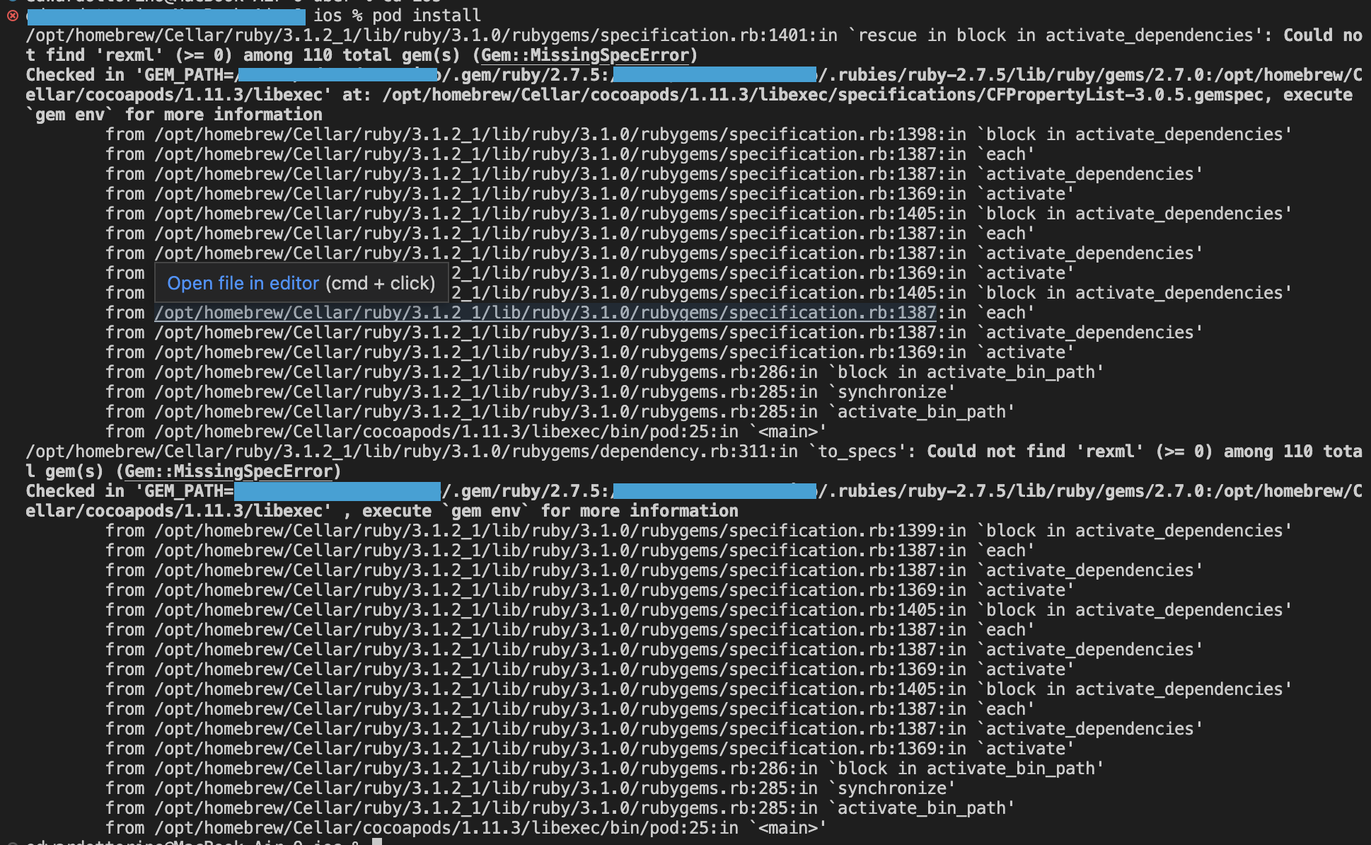 2) brew link --overwrite cocoapods(修复链接)