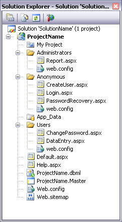 在ASP.NET我的视频系列:成员和角色中的示例中展开,我将这些页面文件放入这样的文件夹中: