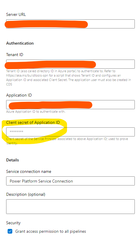 服务主体要求我设置一个客户端秘密,它将由我在DevOps中的服务连接引用