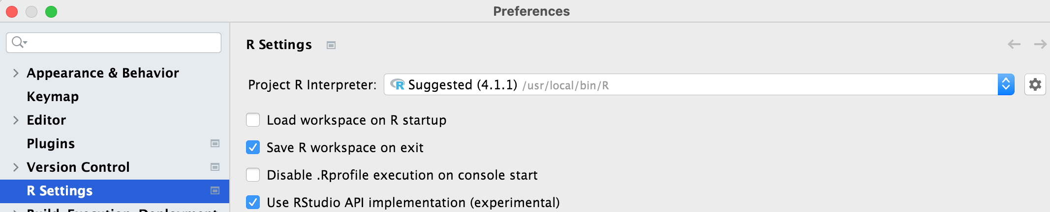 我已经安装了R插件,没有重新启动IDE。在过去,Intellij一直需要重新启动。我想--考虑到在使用插件之前我不需要重新启动--也许在最近的2021.2.X中,他们已经放宽了这一要求。