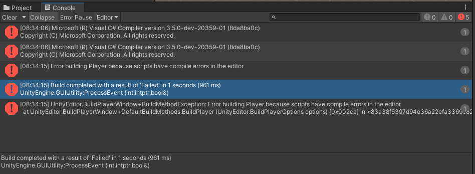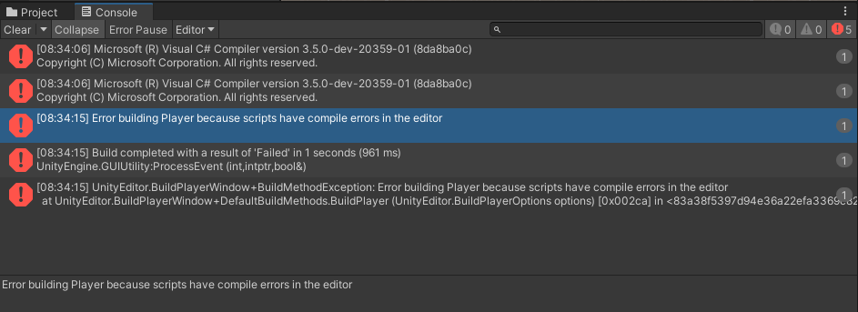 我在我的项目中没有创建任何C#脚本。我也尝试删除库文件夹,但它没有工作。此外,错误只有在照片中给出的描述。我使用的是统一编辑器版本2020.3.20f1