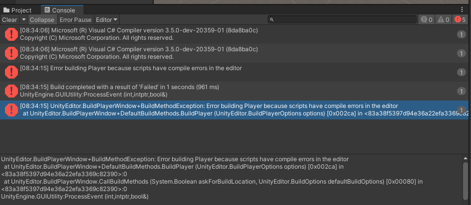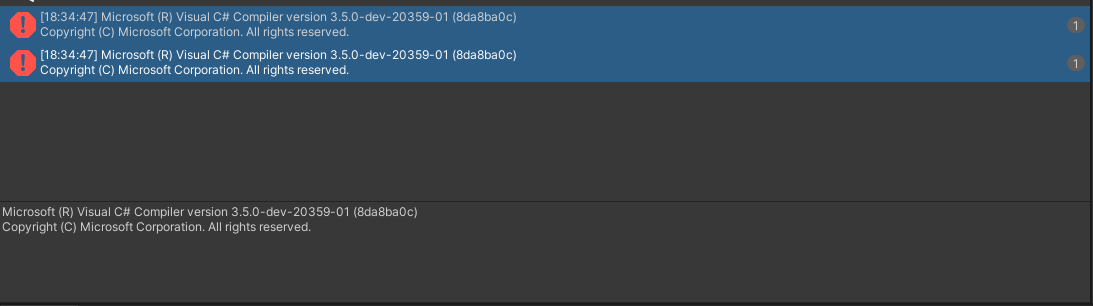 Microsoft (R) Visual C# Compiler version 3.5.0-dev-20359-01 (8da8ba0c)