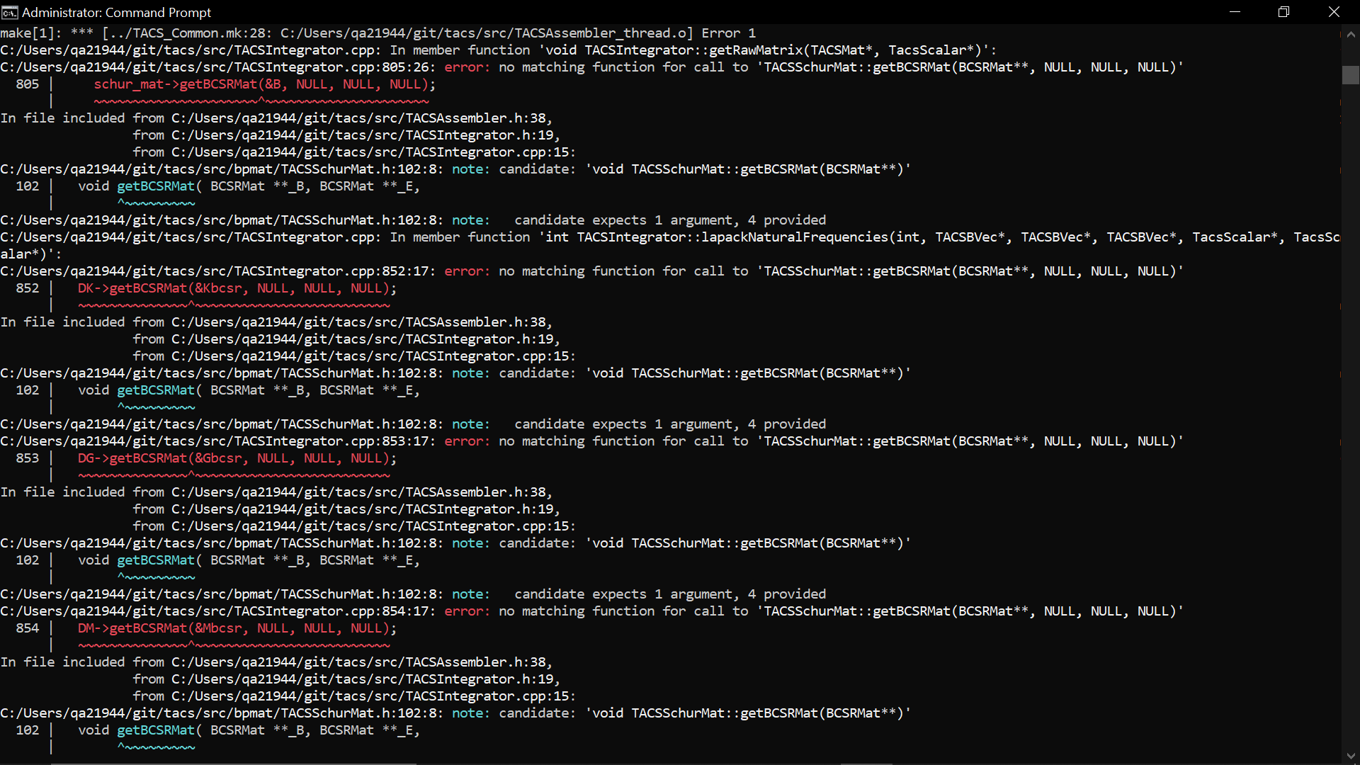 error: no matching function for call to 'TACSSchurMat::getBCSRMat(BCSRMat**, NULL, NULL, NULL)'我试图在受影响的脚本中更改一些变量名(比如N_代替_N),并且消除了第一种和第三种类型的错误,但没有消除第二种错误。