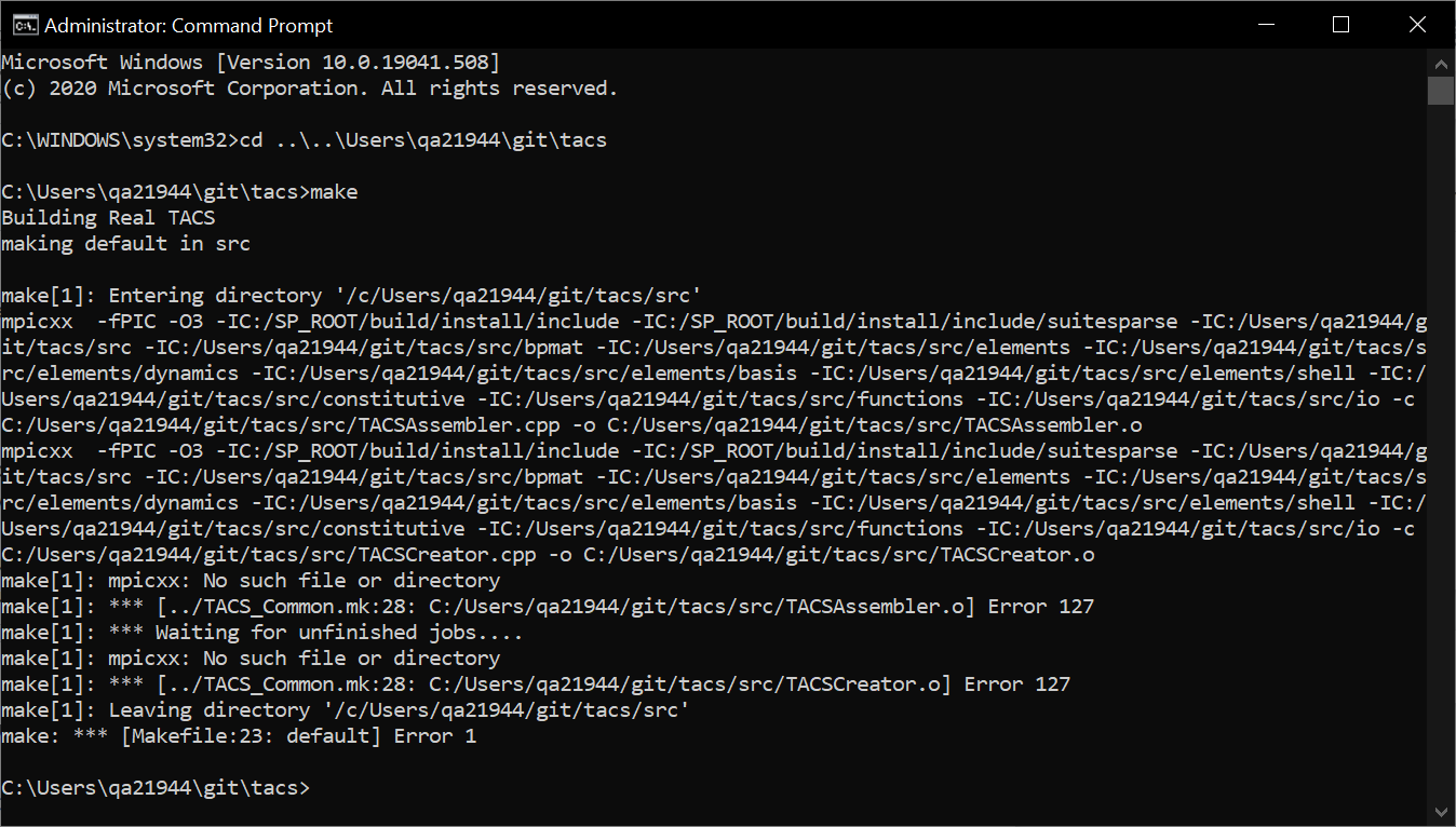 make[1]: *** [../TACS_Common.mk:28: C:/Users/qa21944/git/tacs/src/TACSAssembler.o] Error 127