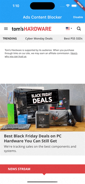 另外,我在GitHub 阻滞剂)上创建了一个完整的项目示例,它使用ContentBlocker类来阻止广告的加载,比如Google。