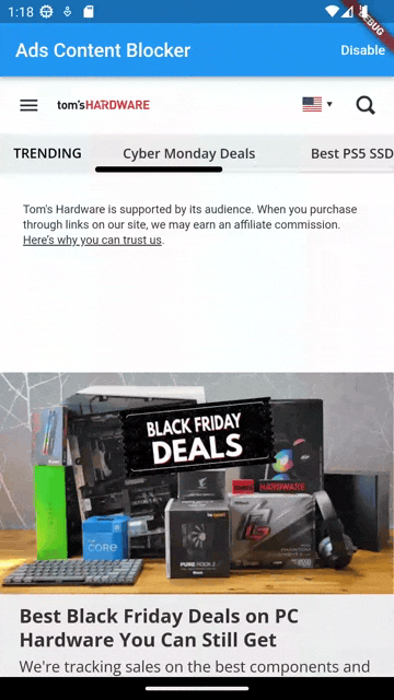 要阻止广告,你可以使用flutter_inappwebview插件(我是作者)。它通过ContentBlocker类提供内容阻塞功能!