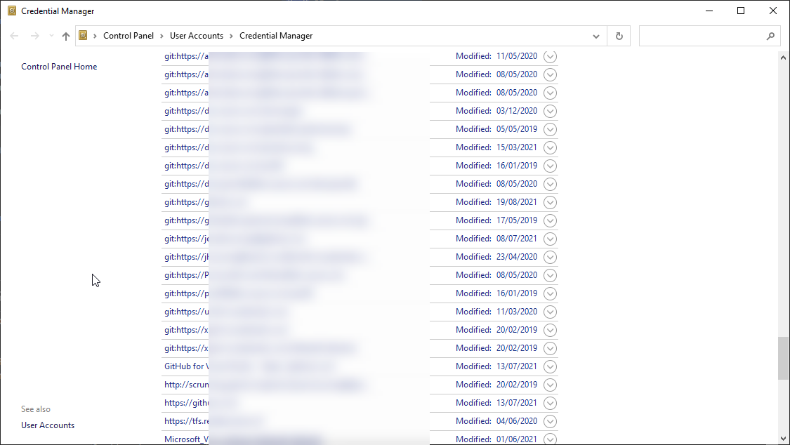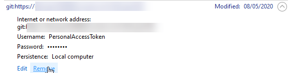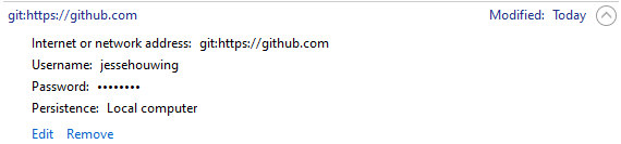 您现在应该在Windows凭据管理器中看到一个新的或更新的条目: