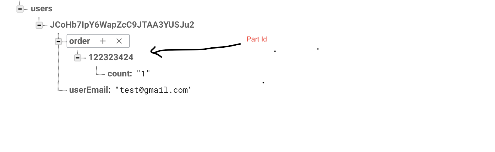 self.ref.child("users").child(user.uid).child("order").child("\(object.objectFromPartsCatalogueListCode!)").updateChildValues(["count" : "1"])