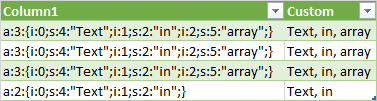 我的想法是将PHP数组字符串解析为Power查询列表,并将这些项连接到逗号分隔的字符串中。