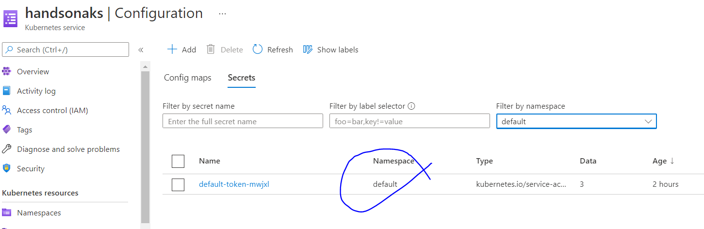 我试图在Azure中创建一个K8s集群,当集群准备就绪时,我可以看到在default