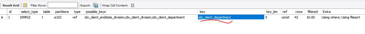 因此,优化器选择idx_client_department而不是idx_client_enddate_division。