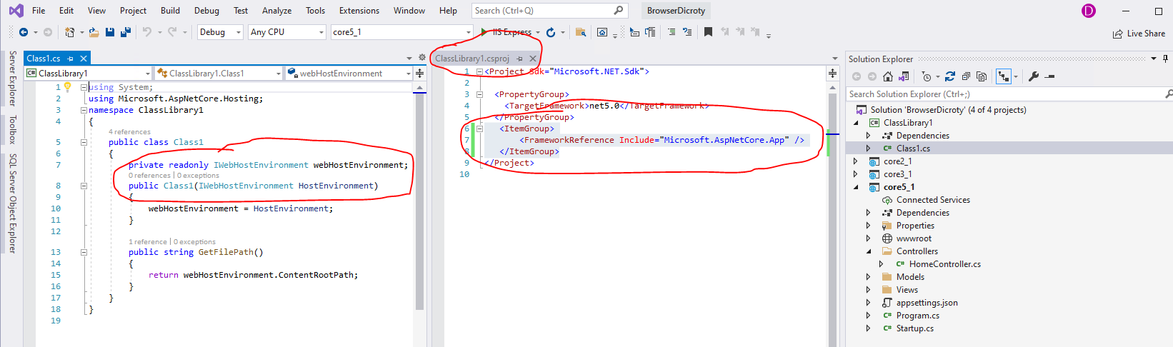 A PackageReference to Microsoft.AspNetCore.App is not necessary when targeting .NET Core 3.0 or higher如何在.NET 5类库中访问IWebHostEnvironment