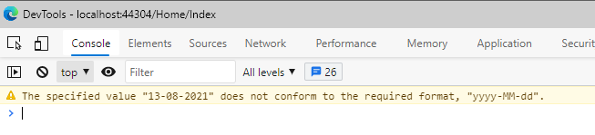 当TextBox类型为date时,您将在控制台中看到类似于此的消息: