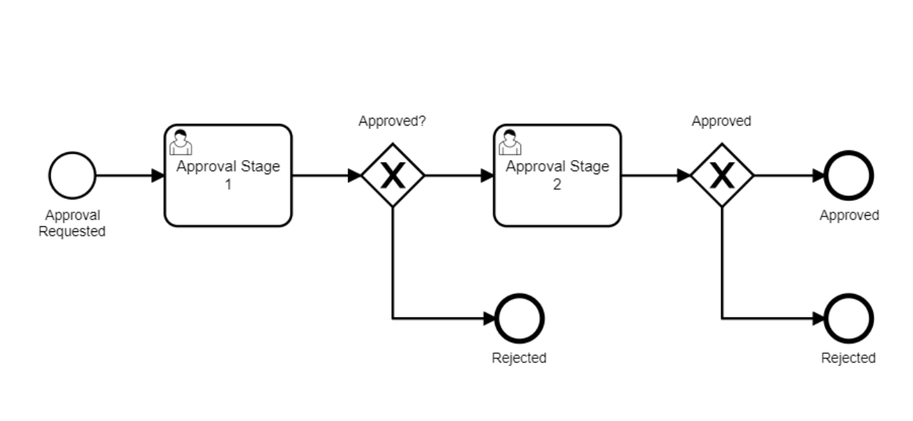 我已经为formsflow.ai中的一个特定用例创建了一个表单和BPMN工作流。BPMN工作流类似于formsflow.ai开源中提供的示例。此工作流由4种状态组成,如:新的、批准的、拒绝的和完成的,如下所示。但是,当我从客户端提交应用程序时,应用程序历史记录不会被创建。