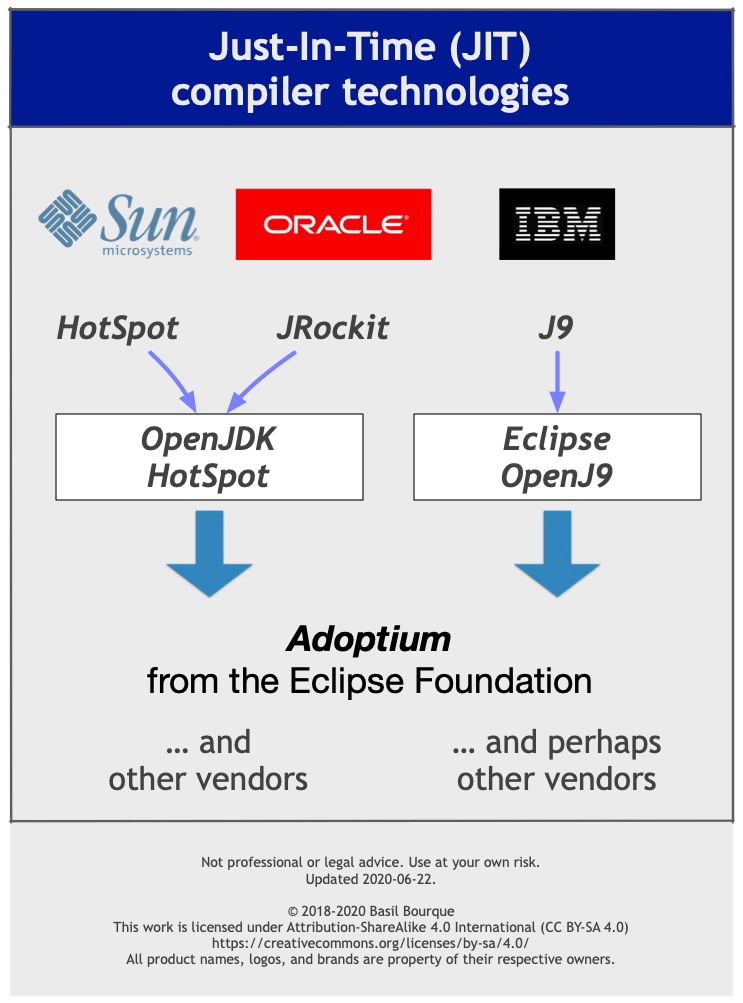 提供JDK构建/安装程序的供应商可以自由选择这些部件。供应商可以选择使用OpenJDK子项目的核心库,以及的OpenJ9 JVM。