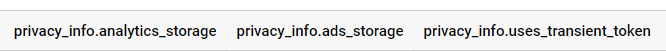 BigQuery模式中的列是什么:privacy_info.analytics_storage, privacy_info.ads_storage, privacy_info.uses_transient_token?我在这个https://support.google.com/firebase/answer/7029846?hl=en&ref_topic=7029512#zippy=%2Cold-export-schema的文件里找不到它。这是用户接受分析/广告跟踪曲奇吗?