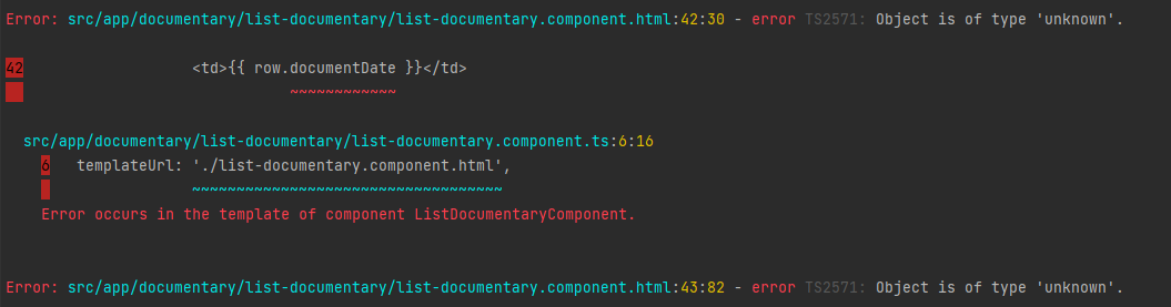 我试图使用NGB分页在我的角度应用程序在一张桌子。但是,当我在*ngFor中使用管道切片时,当尝试切片时,我的角出现错误TS2571: Object是“未知”类型。这是我的密码: