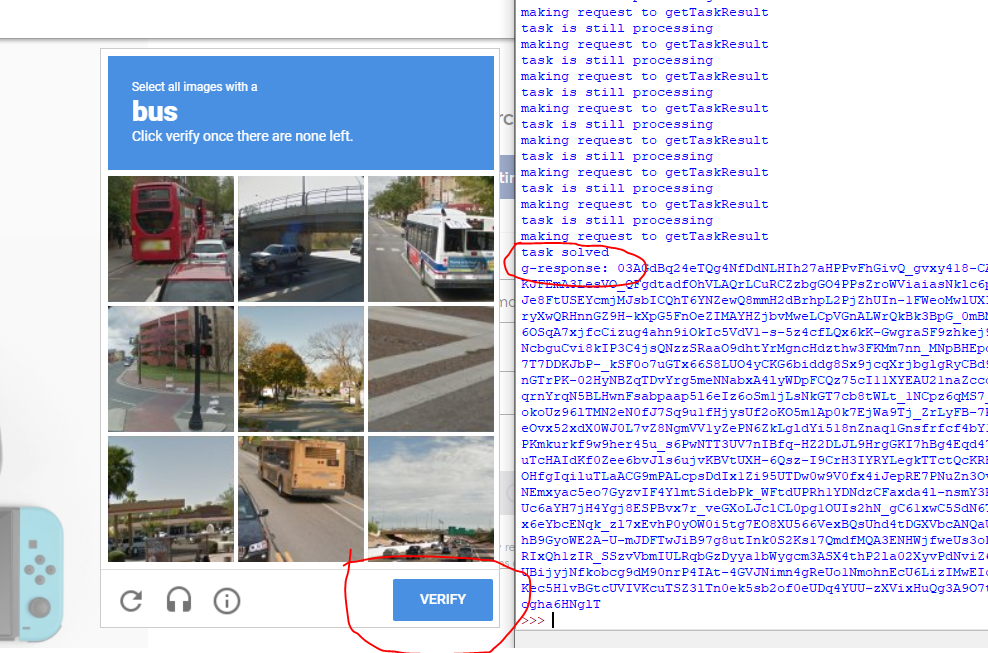 captcha正在解决,但我需要通过传递captcha响应来单击“验证”按钮,这样我就可以转到下一页。这是我的代码: