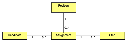 “任务”是为一名应聘者申请一份工作,并定义几个不同的步骤。相反,一个职位可以有多个任务。类似地,候选人可以与多个任务相关联,并且每个步骤对应于一个任务。