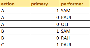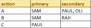 我正在寻找的,是一个结果,我得到的每一个动作,主要演员的名字,和次要演员的名字。