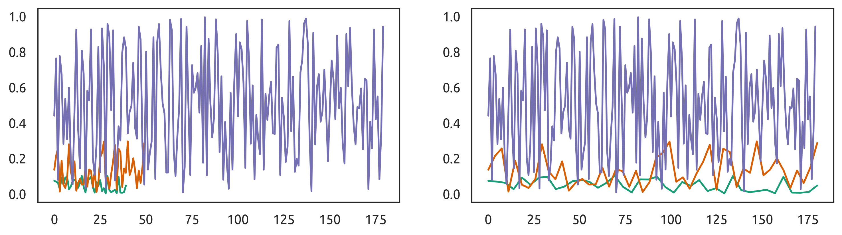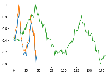 我有这么三个情节。这些较短的地块具有a)峰(局部最大值) b)下峰(局部极小)的地块.问题是这些图与他们的父亲不匹配,因为阵列的大小大约是40,而大的阵列大约有180。在每个单元格中都有0到1之间的值。我使用matplotlib来可视化这些图,但是数据操作可以是我想要的任何东西--熊猫,numpy,列表。我怎样才能扩大这些地块?