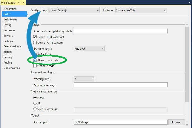 <AllowUnsafeBlocks>true</AllowUnsafeBlocks>