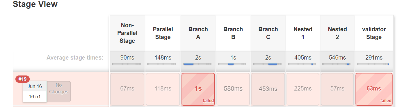 }在上面的管道中,当并行阶段失败时,所有其他阶段都会失败(同时也是顺序的),因为我在选项中使用了"parallelsAlwaysFailFast()“。我只想在失败的情况下并行地失败,而不是顺序的(验证器)。我有办法做到这一点吗?