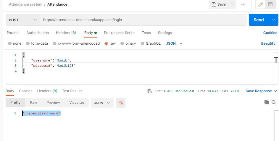 我对Heroku,NodeJS和MongoDB都很陌生。我用flutter创建了一个登录表单,它的后端在NodeJS和MongoDB中。我使用Heroku连接后端到flutter,但是当我在邮递员上运行URL (在构建项目时由Heroku给出)时,它给了我“未指明的名称”