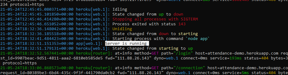 2021-05-25T11:04:30.507933+00:00 app[web.1]: Server is running