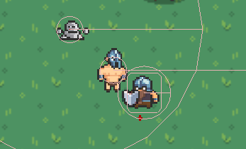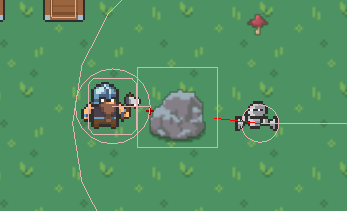 在这里,雷射AI的敌人(左上角的那个)没有向玩家移动(右下角),因为他们之间有一个动态的身体(另一个敌人在中间),这是正确地与光线投射的碰撞。