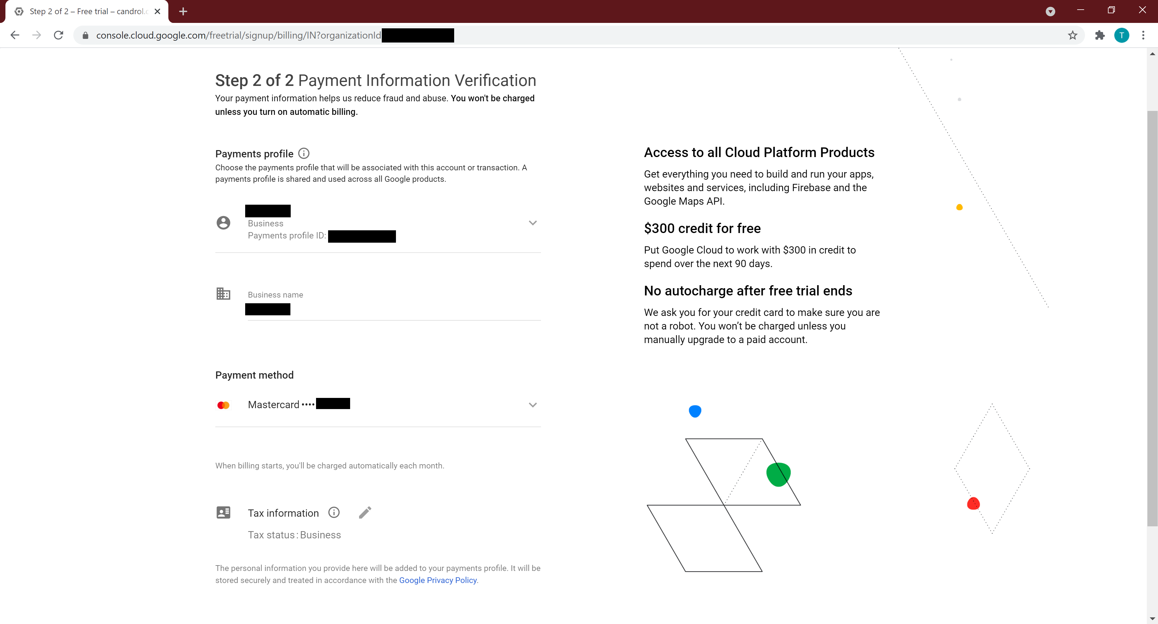我遵循这个链接,这是我尝试过的,这是我被困住的一步。第一步:身份验证-我能够成功地完成这个步骤,通过验证移动号码和继续。第二步:验证付款方法--这是我一直坚持的步骤。如上文所述,我尝试过添加不同的卡,并以不同的卡面对不同的问题。有一张卡没有启用国际支付,我已经启用了,但即使这样,它也不起作用。它不会显示任何错误。它继续到银行的网站进行两步验证过程,我输入支付的“一次性密码”,付款通过,然后返回到相同的“支付信息验证”页面。下面是屏幕截图,以获取更多信息。
