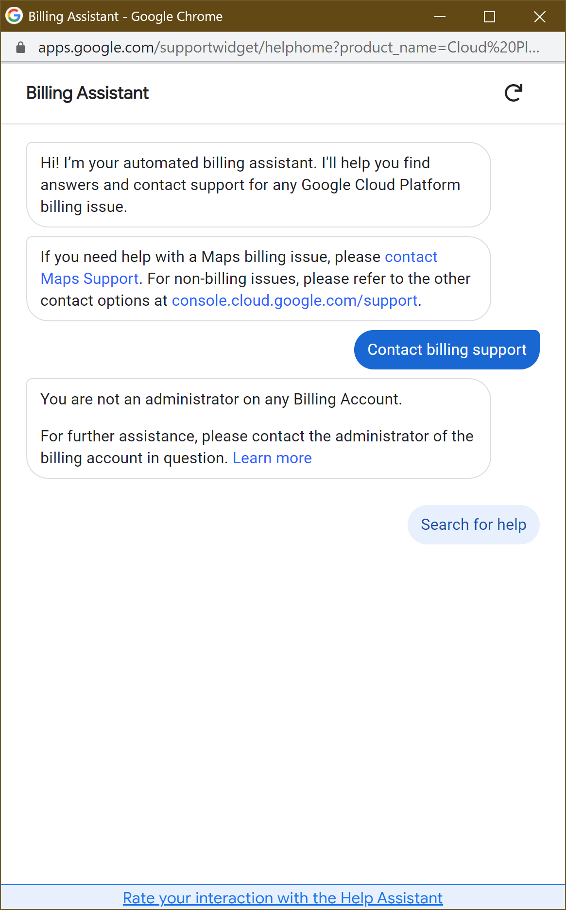 我不是任何计费帐户的管理员-,因为我无法添加信用卡/借记卡来创建记帐帐户,因此我没有资格获得任何帮助。