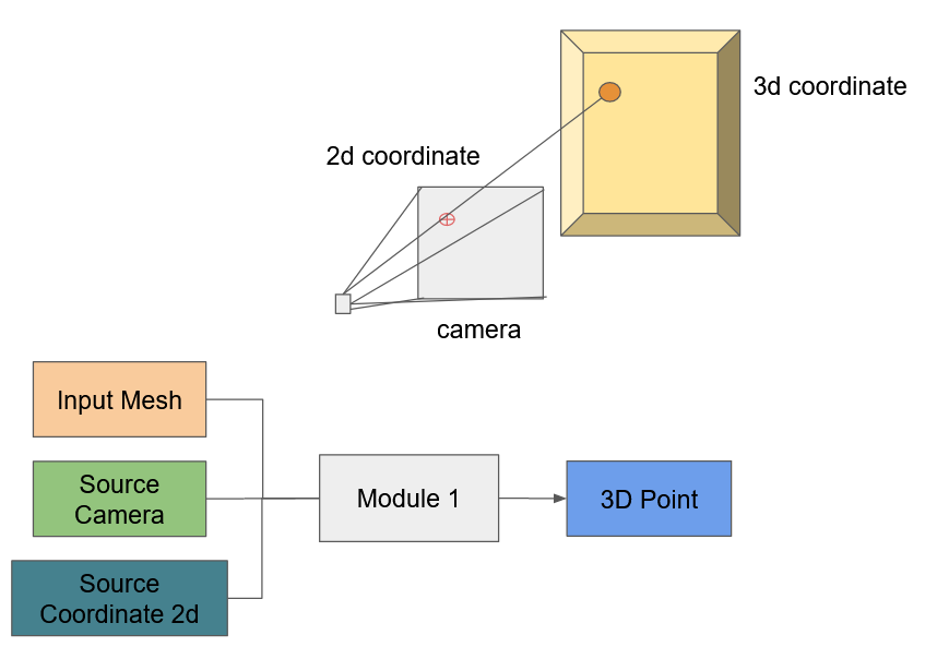 输出:3D点,通过图像平面和网格上的2d点,与摄像机中心的光线相交。(我正在寻找网格上的三维点)