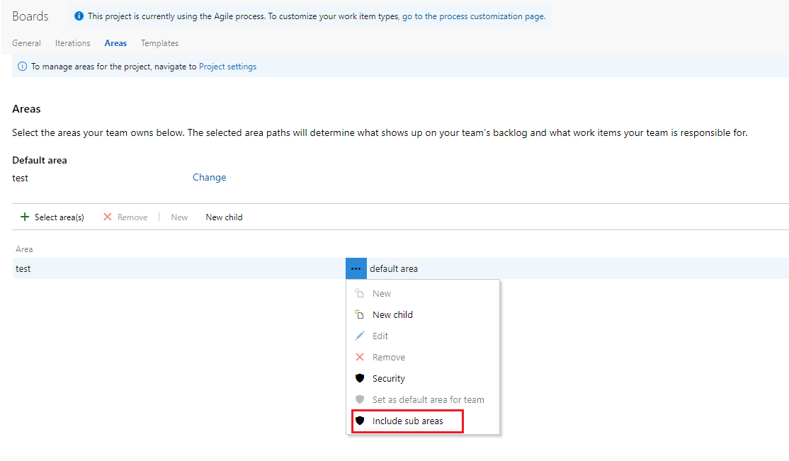 在Azure DevOps板中,它有默认的区域路径,如果我们创建另一个团队,它将在默认区域路径下创建一个分区路径。