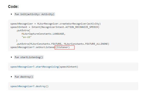 fun init(activity: Activity)speechRecognizer = MLAsrRecognizer.createAsrRecognizer(activity)