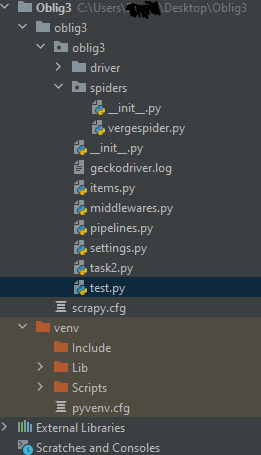runspider: error ..... No module named 'oblig3.oblig3'我从您的屏幕上看到的是,oblig3是您项目的名称。