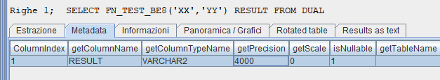 SELECT FN_TEST_BE8('XX','YY') RESULT