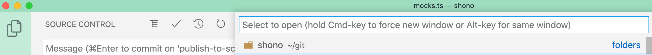为了在项目之间切换,我经常使用ctrl + R,我总是使用“cmd”来强制它在一个新窗口中打开(或者把一个已经打开的匹配窗口放到焦点上)。这样,我就不会意外地关闭活动项目。在选择要打开的项目时,总是使用“cmd”键有点烦人,是否有一种默认配置VSCode来使用它的方法?