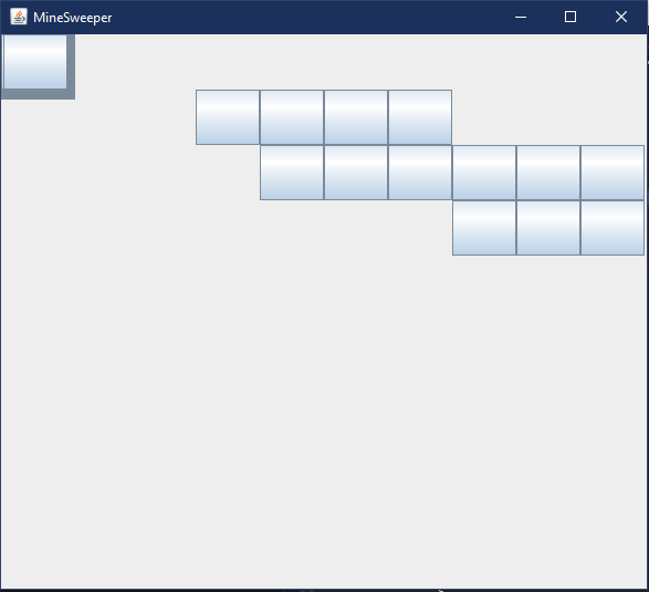 我刚刚开始在Minesweeper上制作Java应用程序。这个想法是GridLayout JPanel在JFrame中。但是在执行程序之后我得到了一些奇怪的窗口。左上角有一个奇怪的灰色角落。而且瓷砖也不全显示出来。不知何故,鼠标悬停在他们身上。