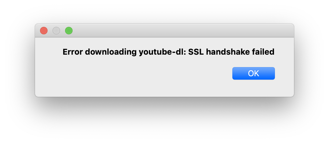 但是当我尝试这样做的时候,我得到了:Error downloading youtube-dl: SSL handshake failed