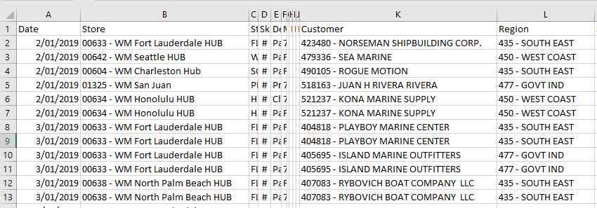 我有一个电子表格在工作,一直跟踪订单,但没有唯一的订单ID,已与这些订单。我希望根据A、B& K列中的数据,在M列中创建唯一的顺序ID。