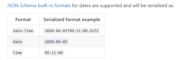 提供给它的json模式只用于序列化声明的properties和某些类型检查(如integer或array)。