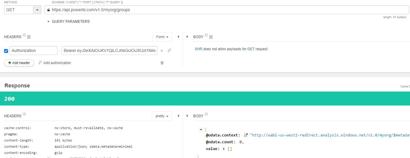 当我在这里运行代码:https://learn.microsoft.com/en-us/rest/api/power-bi/groups/getgroups时,它运行得非常完美。