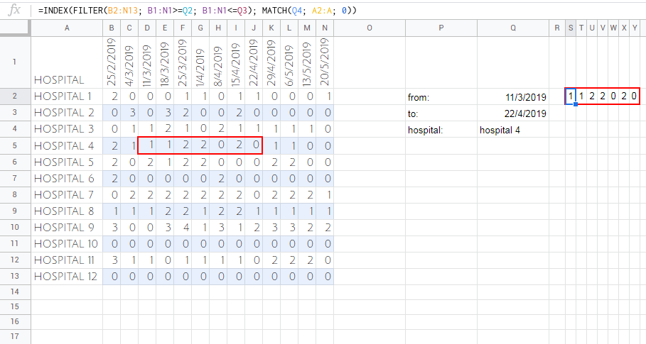 =INDEX(FILTER(B2:N13; B1:N1>=Q2; B1:N1<=Q3); MATCH(Q4; A2:A; 0))