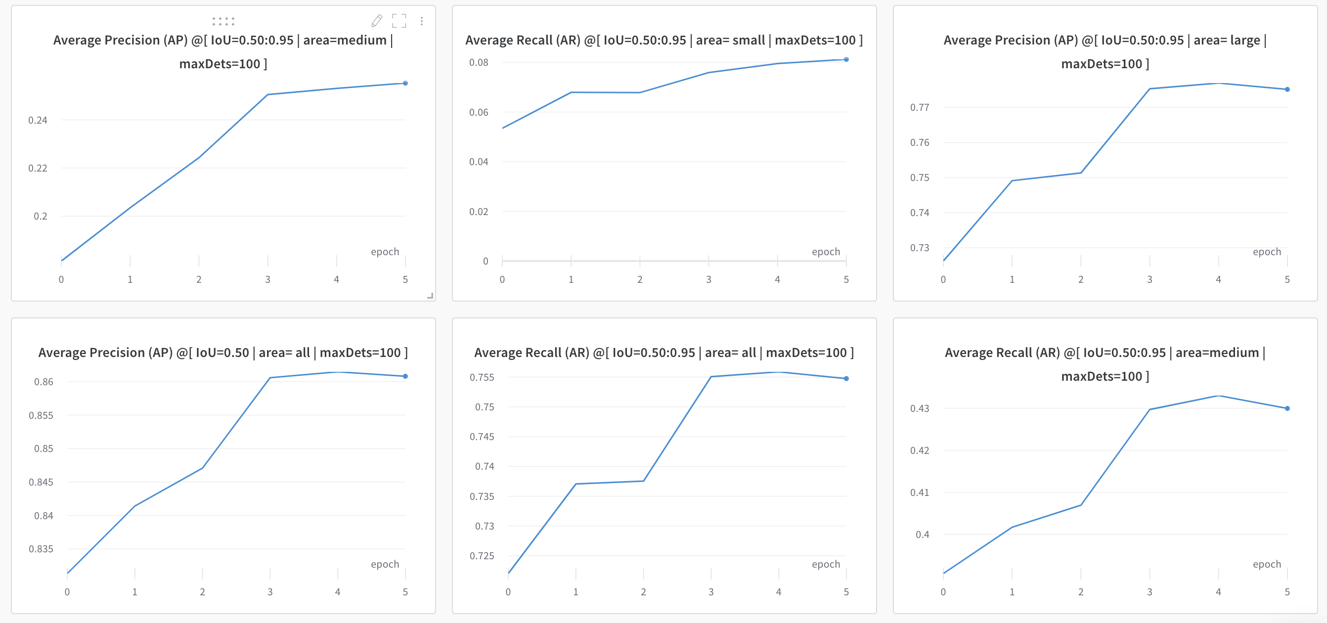 我之所以停下来,是因为COCO评估指标似乎在上一个时代有所下降: