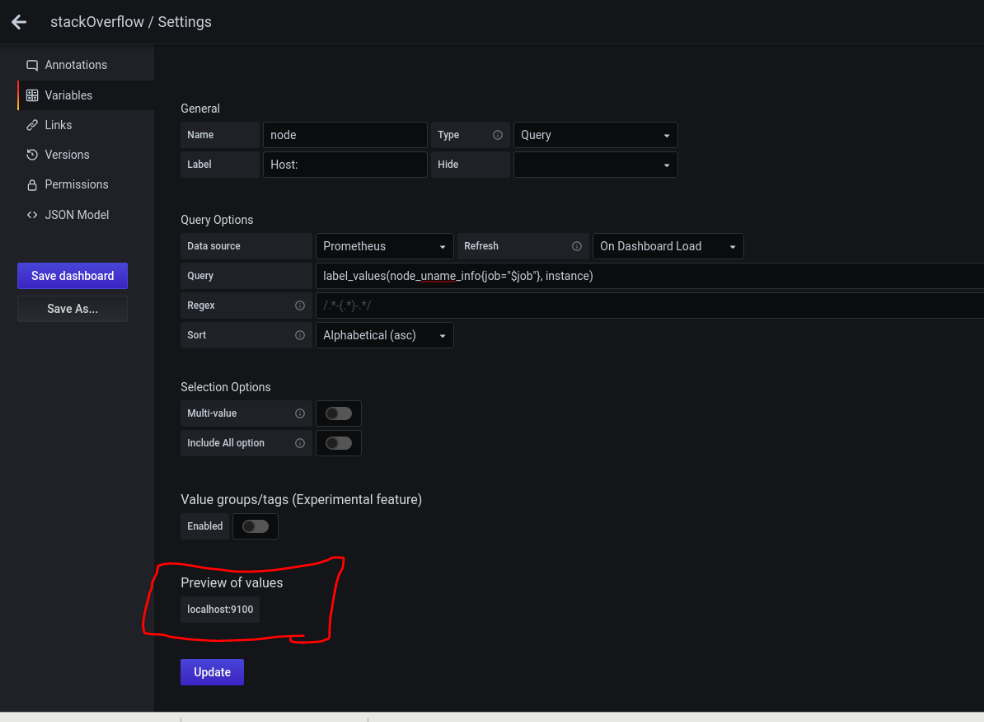 您应该能够看到至少一个节点导出程序。如果没有显示,就意味着没有出口商发送数据。您知道您必须修复该主机上的节点导出程序。