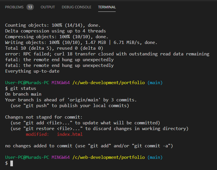 User-PC@Murads-PC MINGW64 /c/web-development/portfolio (main)